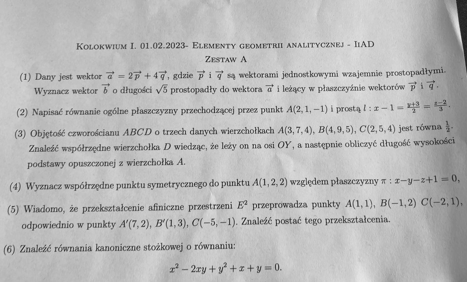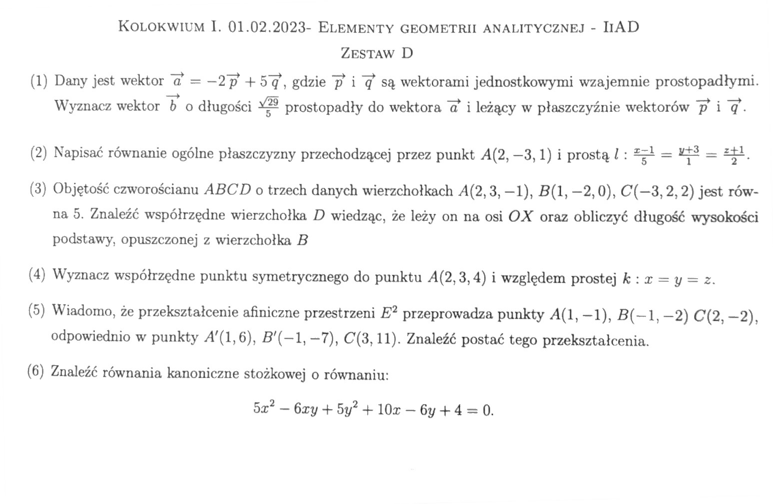 Elementy Geometrii Analitycznej