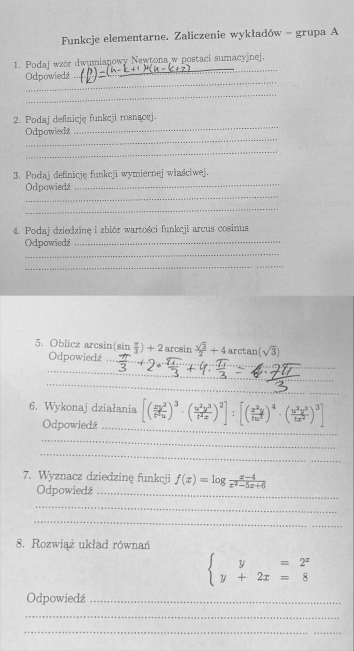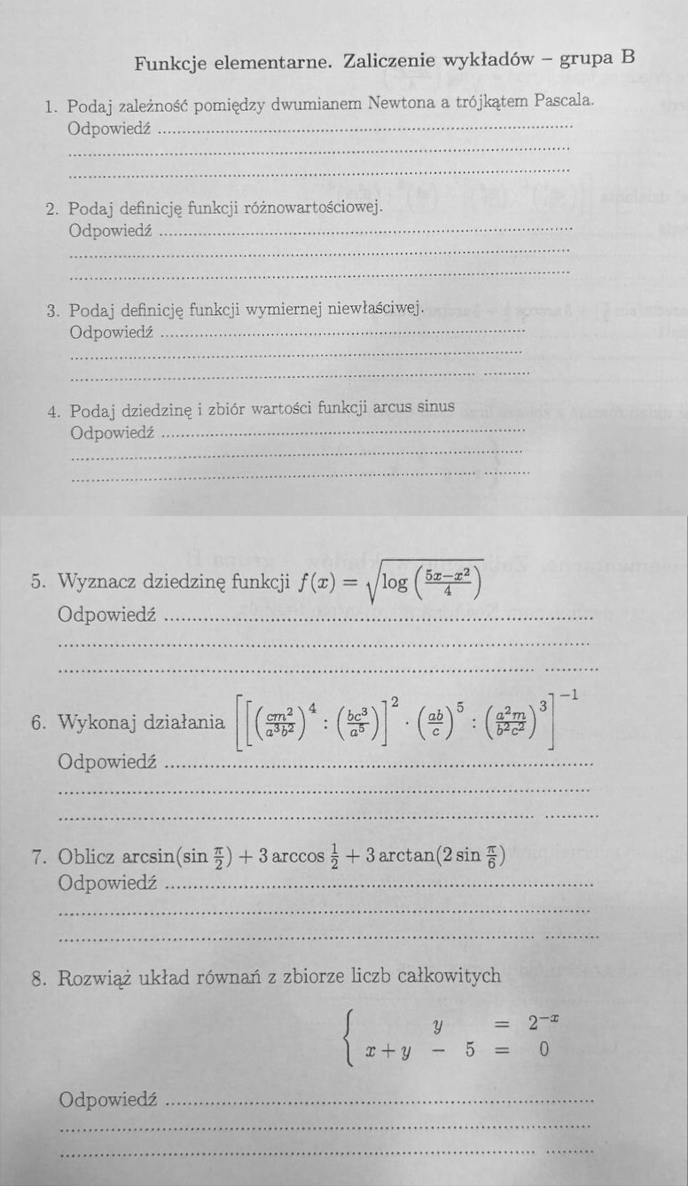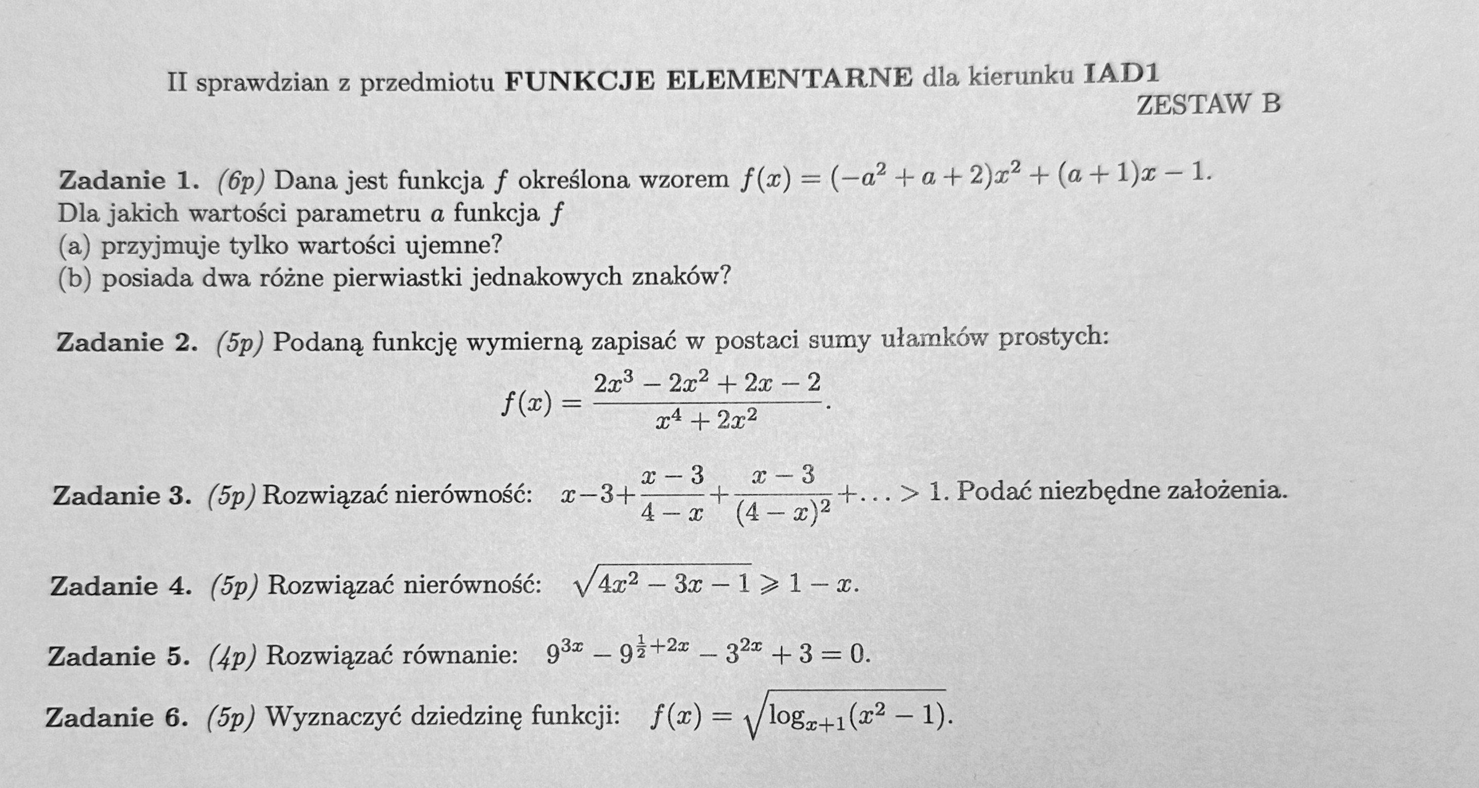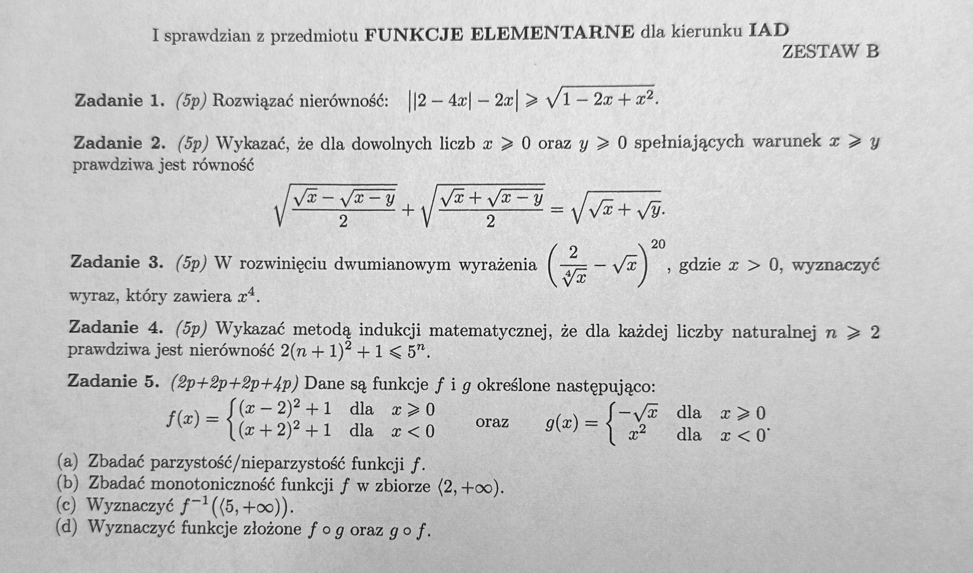 Kolokwium 2, Sprawdzian 2
